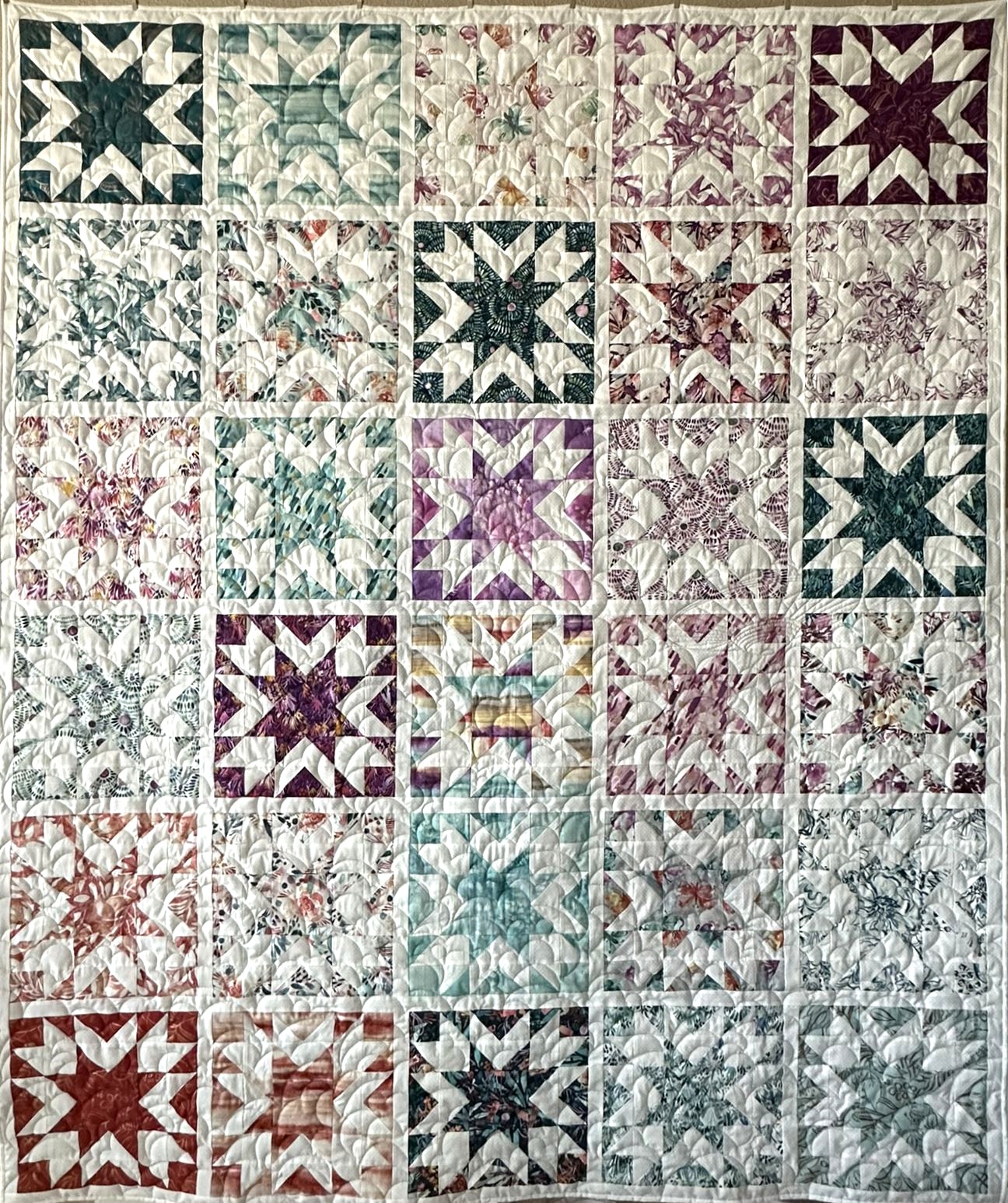 Quilted on the longarm with the 'Clouds E2E' and 'UFO E2E' patterns.
